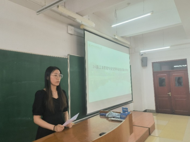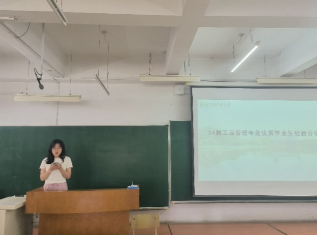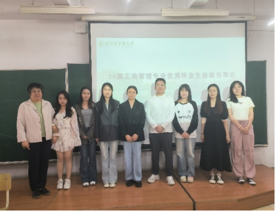 高校毕业生是国家宝贵的人才资源。为深入学习贯彻习近平新时代中国特色社会主义思想和党的二十大精神,全面落实党中央、国务院对高校毕业生就业创业工作的决策部署,教育部决定实施“2024届全国普通高校毕业生就业创业促进行动”,进一步完善高校毕业生就业创业服务体系,全力促进高校毕业生高质量充分就业。为帮助学生树立良好的择业观,明确未来学习方向与职业规划,指导学生高质量就业,5月17日,商务学院工商管理专业在主楼0210召开2024届优秀毕业生代表经验分享会,由工商管理教研室主任王艳红、教师王昱淇主持。优秀毕业生代表由李妍、王宇欣等7人组成。7位工商管理专业优秀毕业生代表分别围绕保研、考研、考公、就业四个方向,向2021级、2022级工商管理专业本科生介绍相关情况,分享自身经验。