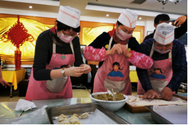 最后,激情褪去,商务学院各位教师围坐在一起,进行了亲切热闹的茶话会环节,老师们吃着刚刚自己亲手包的饺子,大家既聊工作,也话家常。各位教职工在紧张的工作之余,能够有这样一个团结热闹的相聚场景,无不感觉到幸福和温馨。