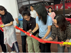 活动现场,各组师生们全神贯注,不断交流策略,调整站位姿势。工商管理教研室的师生们配合无间,以流畅的传递和稳定的节奏率先完成任务,赢得本项目的胜利,充分展现了团队的凝聚力。