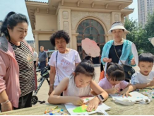 同学们分组开展活动,热情地邀请过路的老人和小朋友参与其中,耐心地为他们讲解制作方法并提供服务和帮助。作为中国非物质文化遗产之一的漆扇制作技艺多样,过程有趣。在商务学院学子的引导下,每位参与者都做出了独一无二的扇子。同学们的细心负责受到了社区负责人和社区群众的一致好评。
