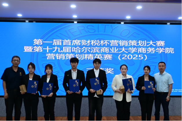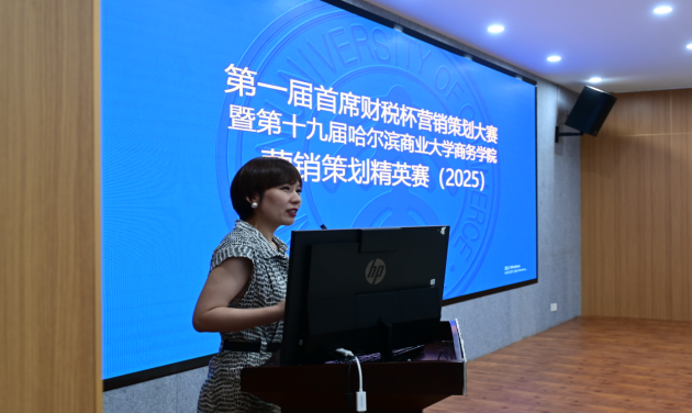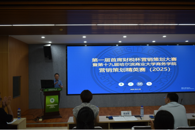 2025年6月26日,哈尔滨商业大学商务学院第一届“首席财税杯”营销策划大赛暨第十九届营销策划精英赛(2025)成功举办。本次赛事得到了首席财税服务(黑龙江)有限公司和大局品牌营销咨询(哈尔滨)有限公司的特别支持。出席本次活动的学院领导和企业嘉宾有商务学院党委书记曹际燕、院长易加斌、副院长赵莉,首席财税创始人张鹤、合伙人陈广学,大局品牌营销咨询创始人王娜、联合创始人李冰。2022级市场营销专业和2022级工商管理专业全体学生参加本次大赛。