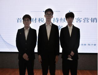 市场营销教研室徐惠坚副教授、赵博博士、大局品牌联合创始人李冰为优秀奖团队颁奖